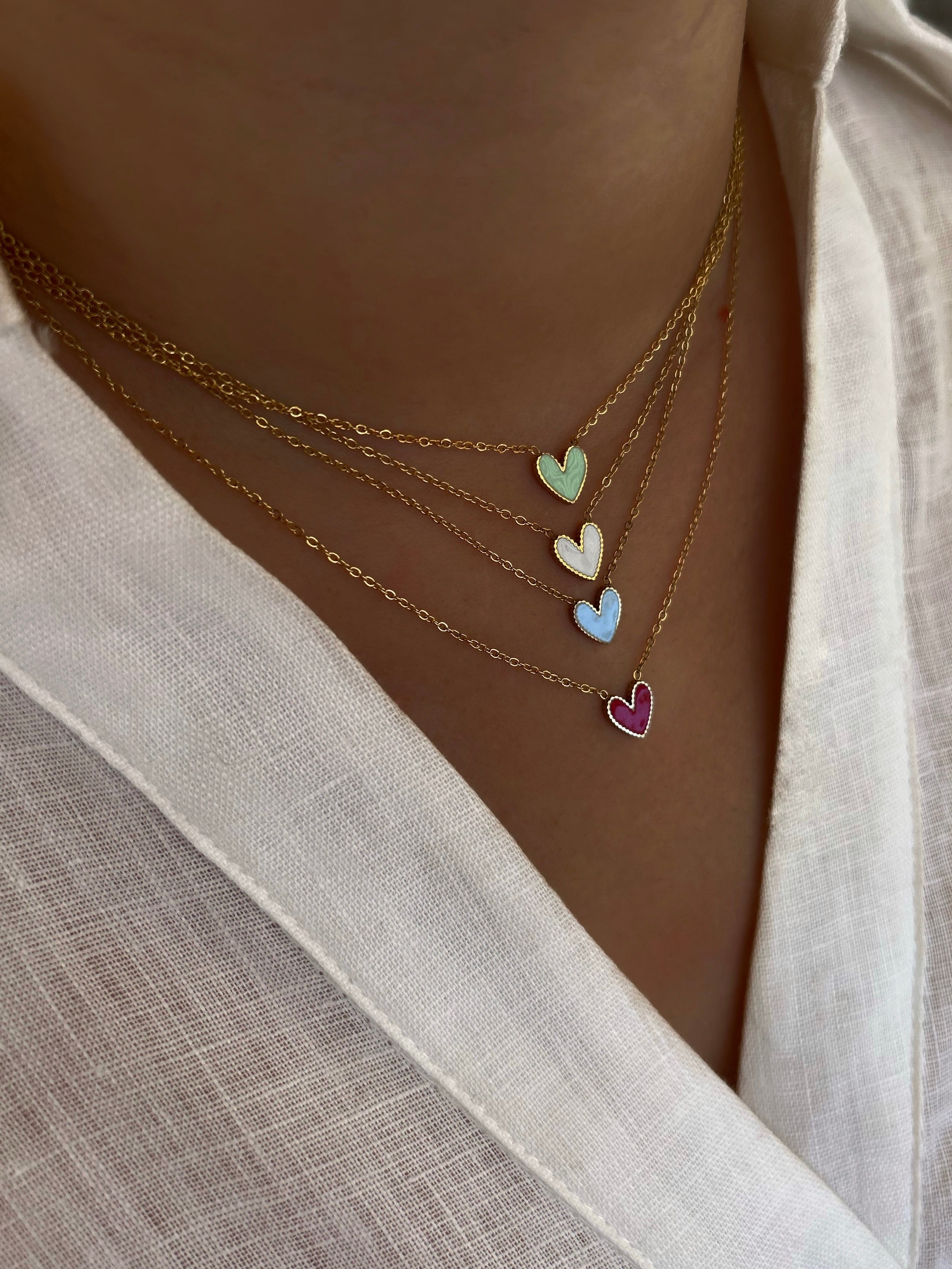 Collier en fines chaînes ajustables avec un pendentif Coeurs colorés.
