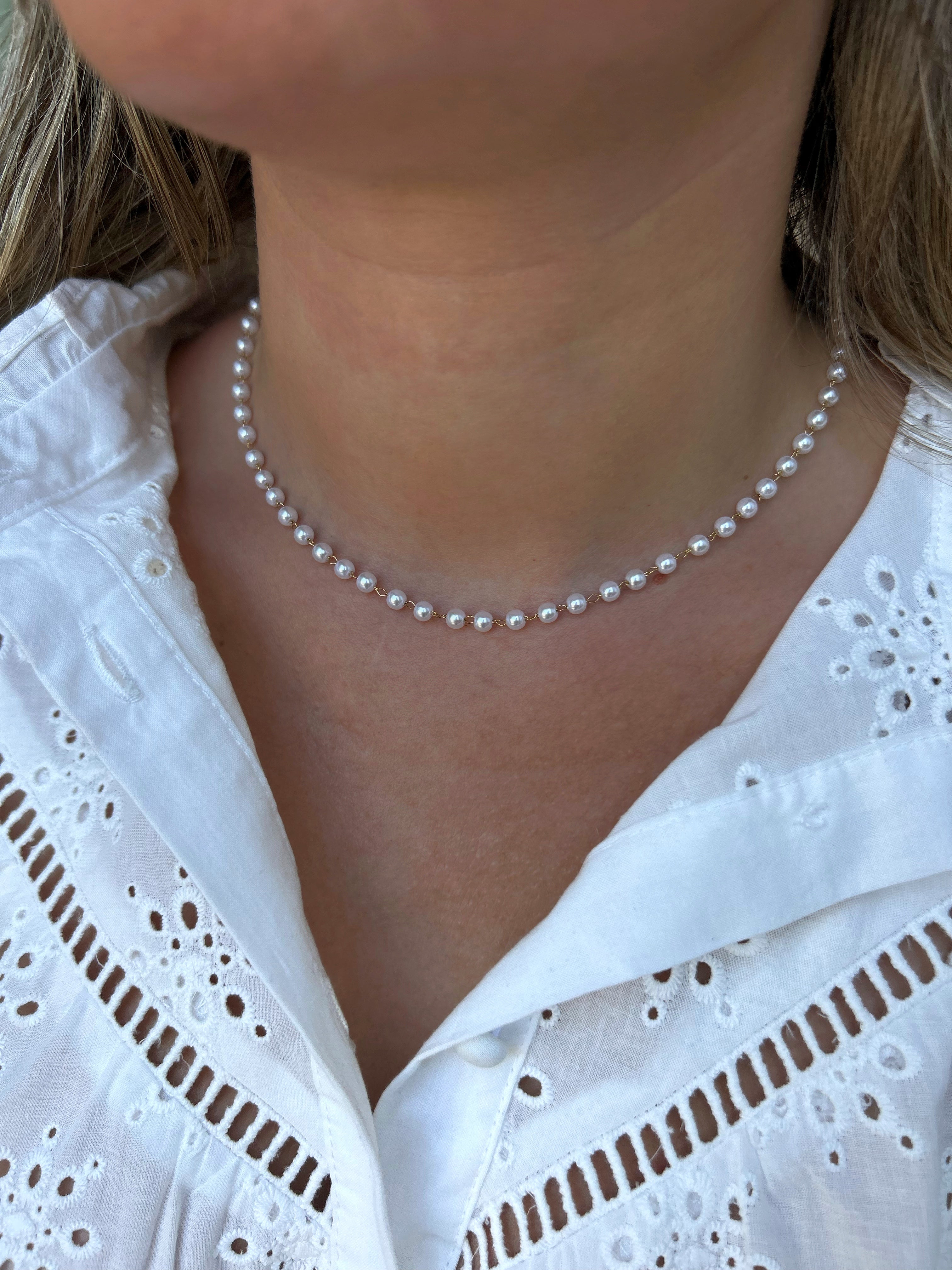 Collier à perles blanches.