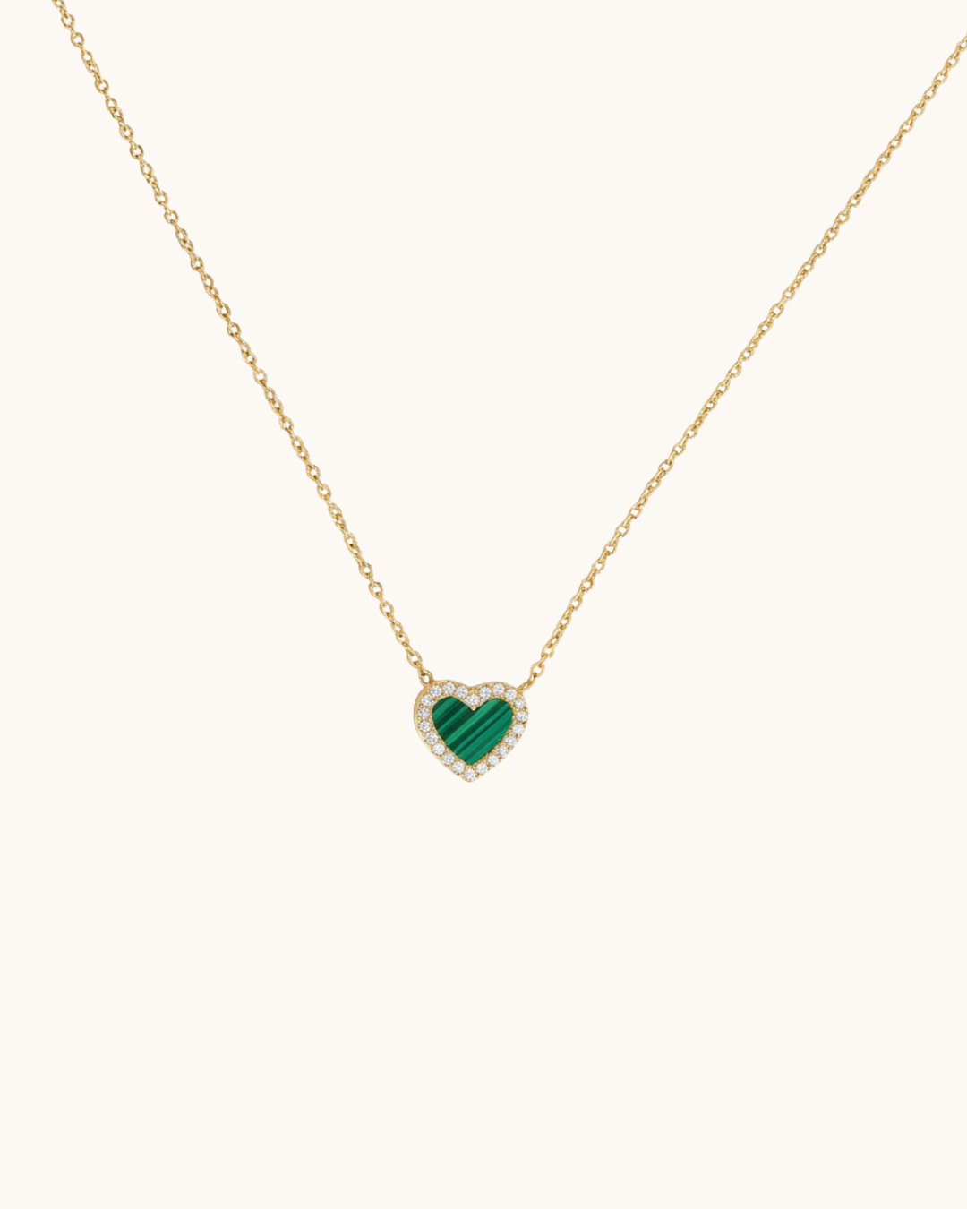 Collier avec un coeur vert sertis de strass.