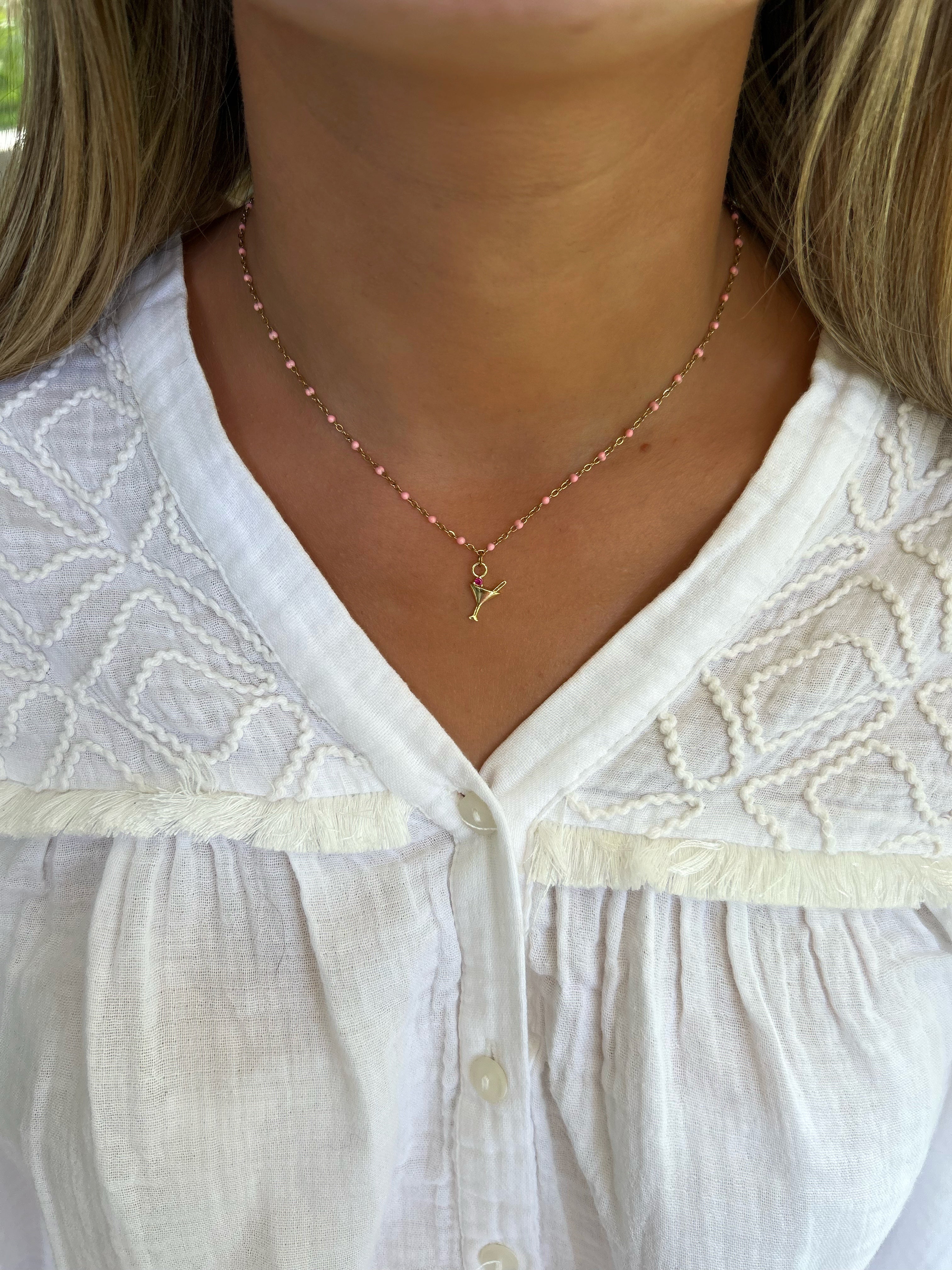 Collier à fines perles blanches ajustable avec un pendentif Cocktail.