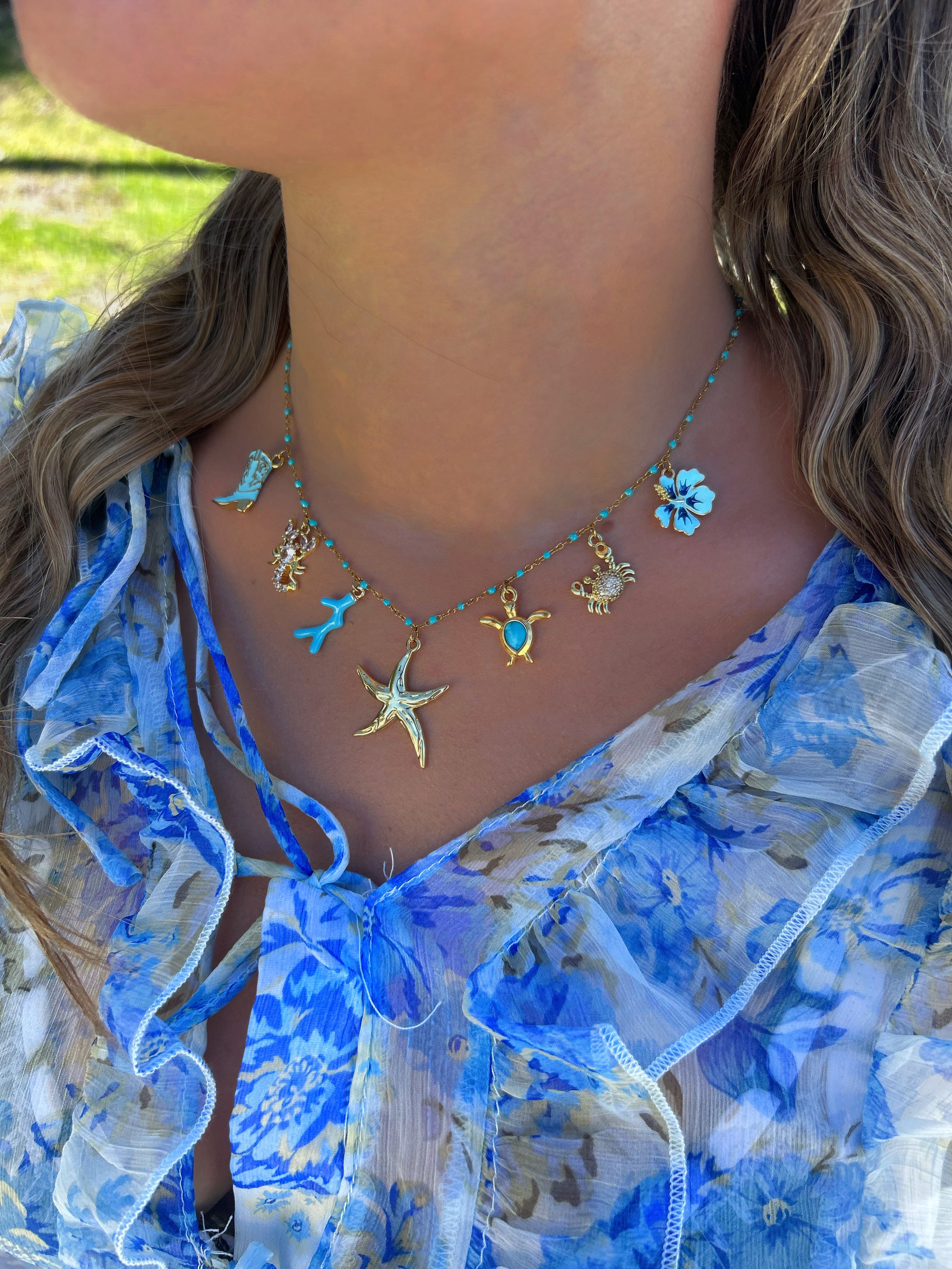 Le collier charms Polynesie est une composition soignée de nos charms best-sellers, conçu pour vous offrir une pièce tendance, prête à être portée dès l'achat.